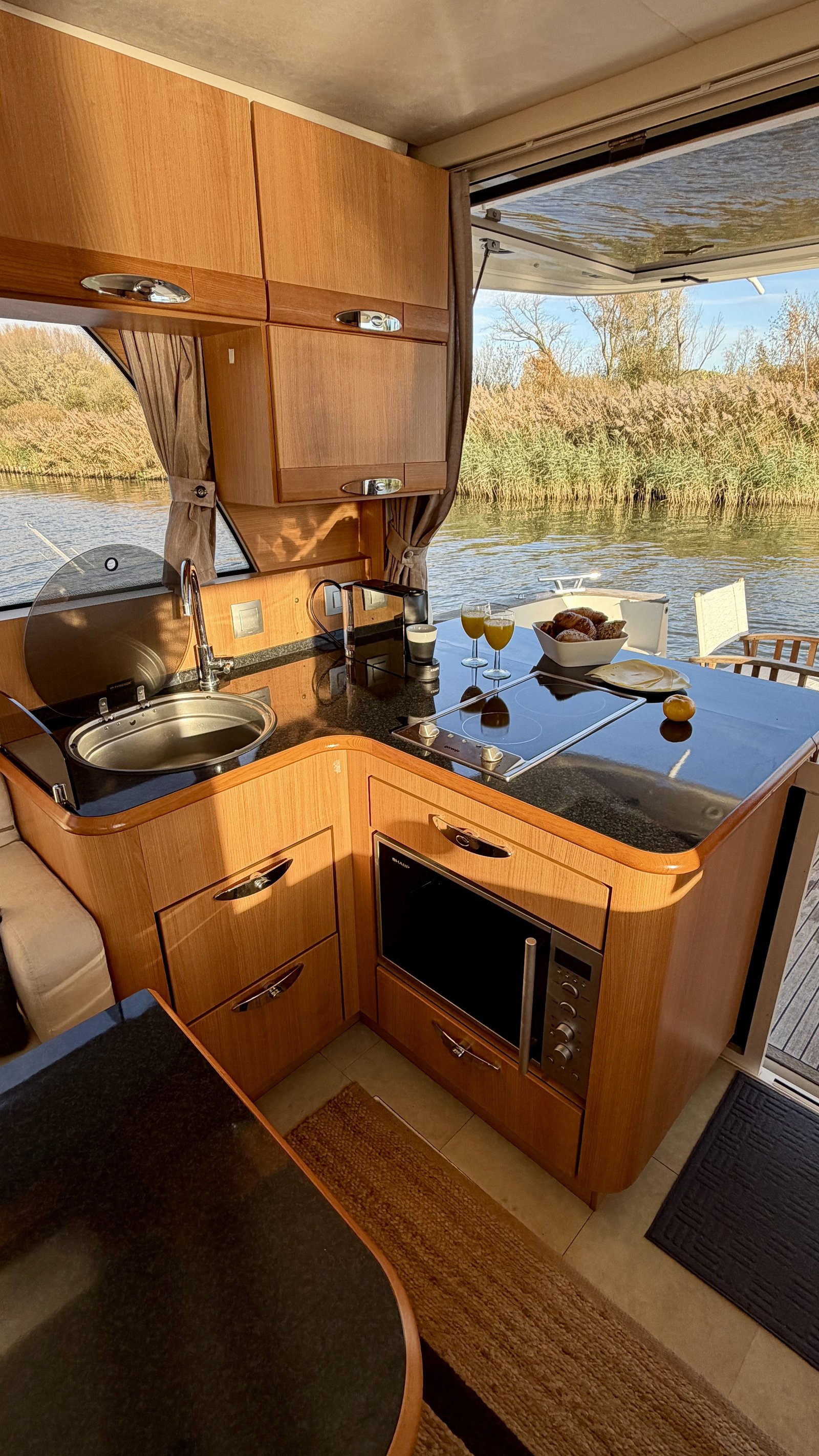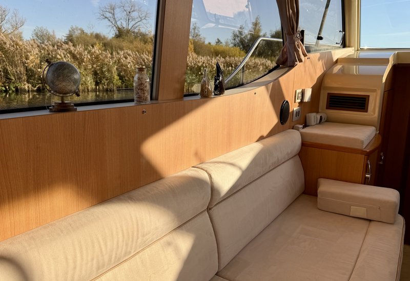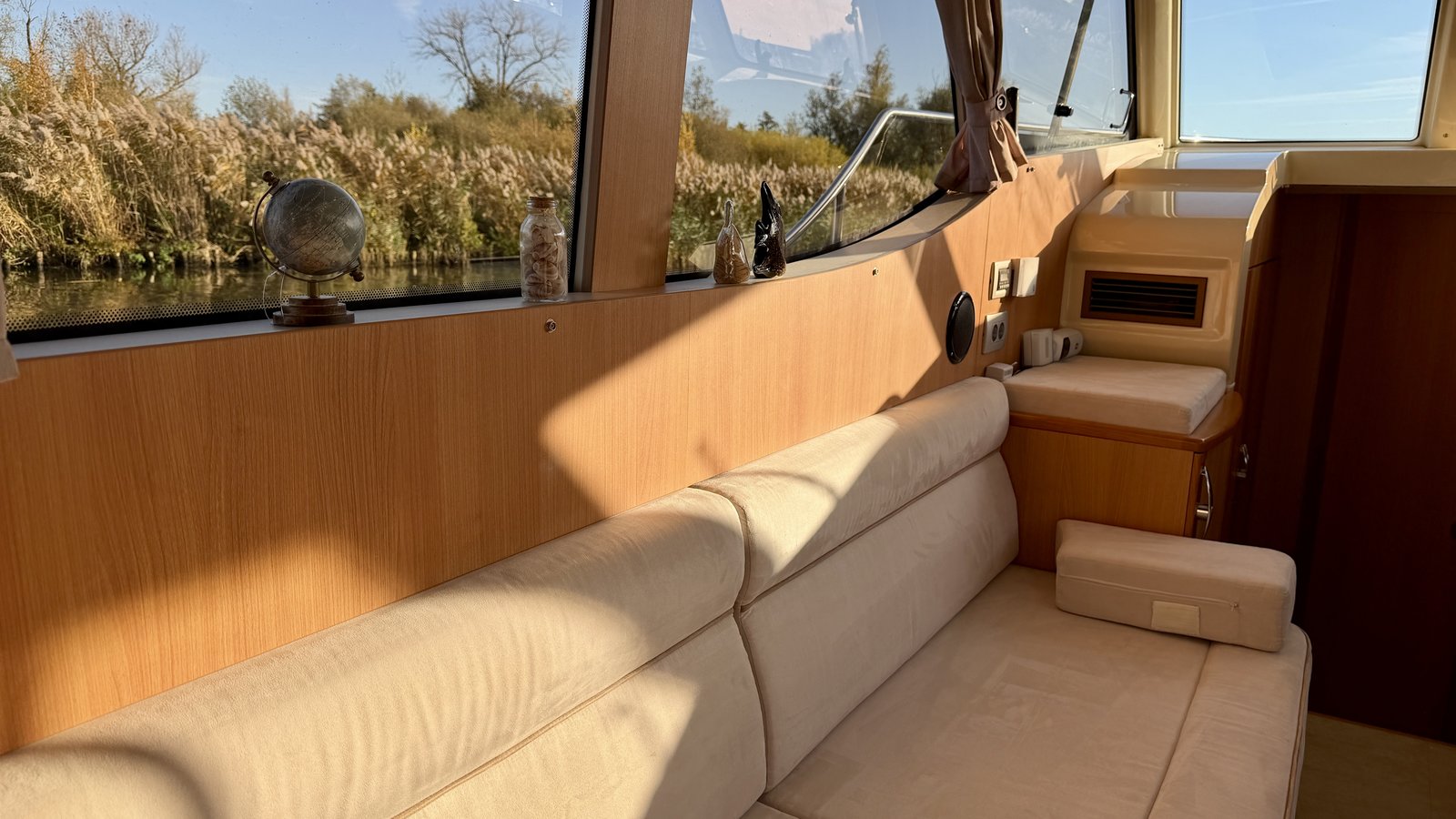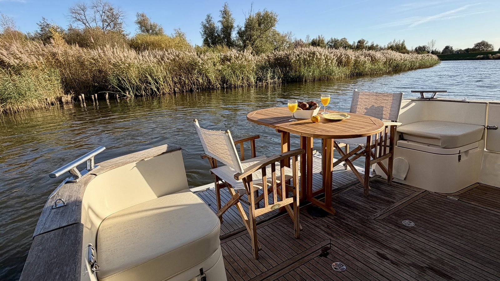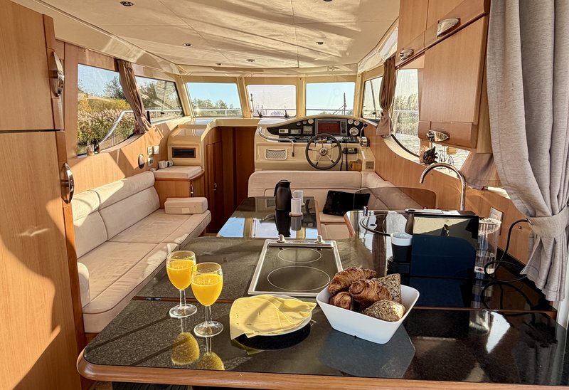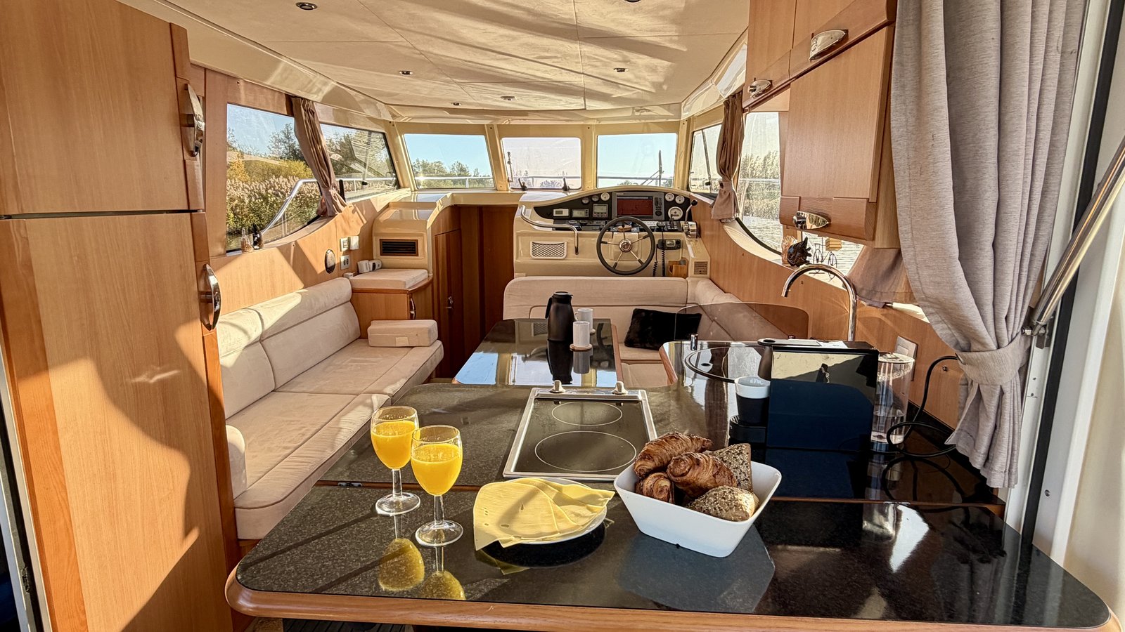 Motorjacht “Naousa” – Greenline 33 Ontdek Nederland vanaf het water met de Greenline 33 “Naousa”. Deze stijlvolle en energiezuinige motorboot is ideaal voor twee personen en volledig vaarbewijs vrij te huren. Vanuit Heukelum vaar je ontspannen door het Groene Hart van Nederland, langs plaatsen als Utrecht, Gouda, Leiden en zelfs richting de Biesbosch of Amsterdam. De Greenline 33 onderscheidt zich door haar slimme ontwerp. Het grote raam bij de keuken klapt volledig open, waardoor je letterlijk aan het water kookt en geniet van het buitenleven. Ook het openklapbare zwemplateau maakt een duik of een ontspannen moment aan de achterzijde van het schip onweerstaanbaar. Met boeg- en hekschroef is manoeuvreren eenvoudig, ook voor wie weinig ervaring heeft. Boek vandaag nog jouw motorjacht huren avontuur en ervaar hoe comfortabel en ontspannen varen in Nederland kan zijn.