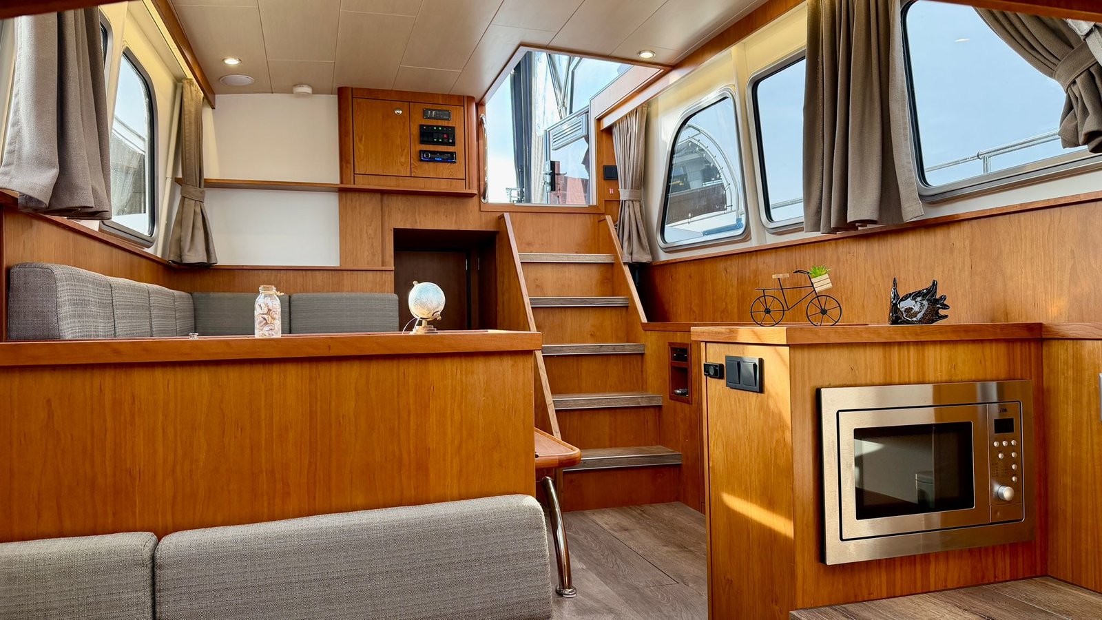 Vanuit onze centrale ligging vaar je direct mooie routes door rivierengebied en plassen in Midden-Nederland. Afwisselend, rustig en goed geschikt voor een ontspannen tocht met dit motorjacht.